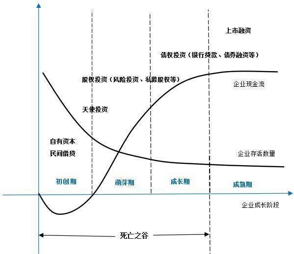 對于科技企業(yè)生命周期前期的支持是科技金融非常重要的一環(huán),如果沒有前期培育出來大量的種子,就無法培育大量大型高科技企業(yè)(日本和德國高科技產(chǎn)業(yè)發(fā)展的主要不足就在于這里),發(fā)展高新技術(shù)產(chǎn)業(yè)就缺乏依托。因此,我們將科技金融研究的重點(diǎn)放在對于科技企業(yè)生命周期前期,即如何從金融角度分析如何促進(jìn)跨越“死亡之谷”。