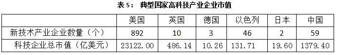 (2)從市值總額上,美國遙遙領(lǐng)先,高科技企業(yè)總市值高達(dá)23122億美元,中國緊隨其后,1379.4億美元;英國位列第三,為486.14億美元;以色列位于第四名,131.71億美元;日本、德國相對(duì)較弱。