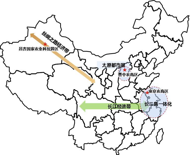 圖1南京農(nóng)高區(qū)、晉中農(nóng)高區(qū)、昌吉國(guó)家農(nóng)業(yè)園區(qū)區(qū)位圖