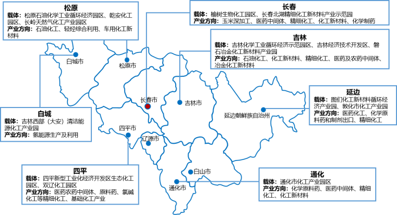 ——吉林石化產(chǎn)業(yè)布局:打造吉林、四平、松原、長(zhǎng)春、通化、延邊、白城七大產(chǎn)業(yè)基地,重點(diǎn)發(fā)展石油化工、天然氣化工、化工新材料、氯堿化工、生物化工、精細(xì)化工等產(chǎn)業(yè)。