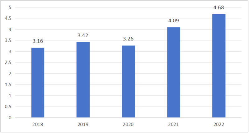 圖表3:2018-2022年江陵縣人均GDP(萬元)變化