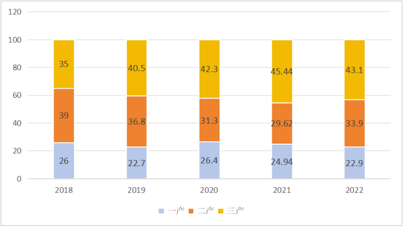 圖表4:2018-2022年江陵縣三次產(chǎn)業(yè)結構變化