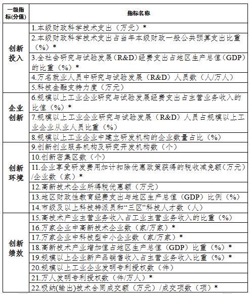創(chuàng)新型縣(市、區(qū))培育建設(shè)指標(biāo)體系