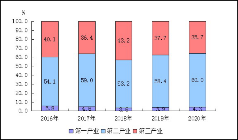 2 2016年-2020年陽(yáng)城縣三次產(chǎn)業(yè)結(jié)構(gòu)情況