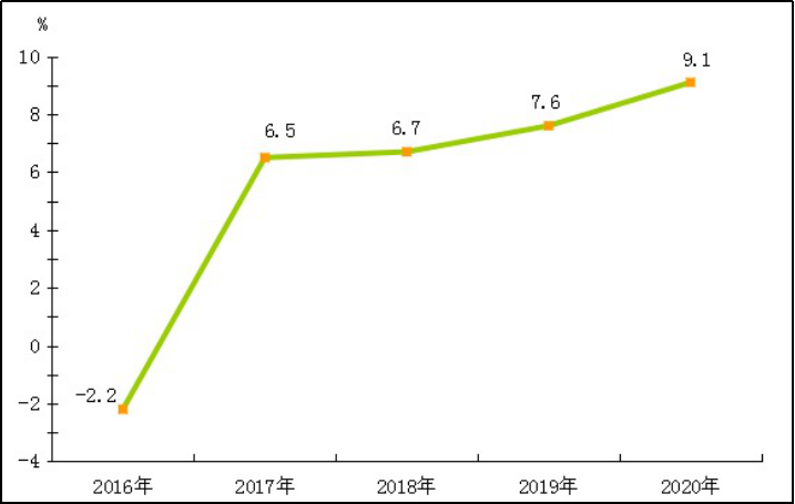3 2016年-2020年陽(yáng)城縣規(guī)模以上工業(yè)增加值增長(zhǎng)速度