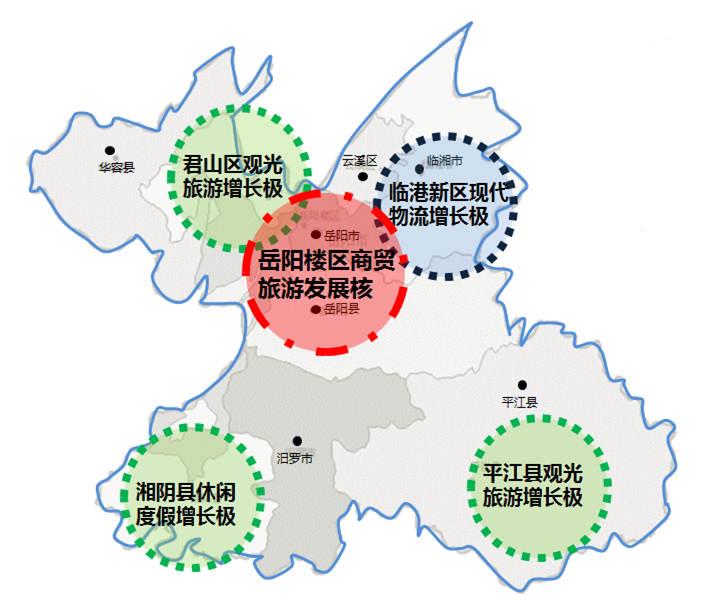 著力打造“一核四極”空間發(fā)展格局,即岳陽樓區(qū)為核心,湘陰縣、臨港經(jīng)濟區(qū)、平江縣、君山區(qū)為四個經(jīng)濟增長極,以點帶面,實施錯位發(fā)展,其他區(qū)縣依據(jù)比較優(yōu)勢發(fā)展特色服務(wù)業(yè),形成全域服務(wù)業(yè)的大發(fā)展格局。